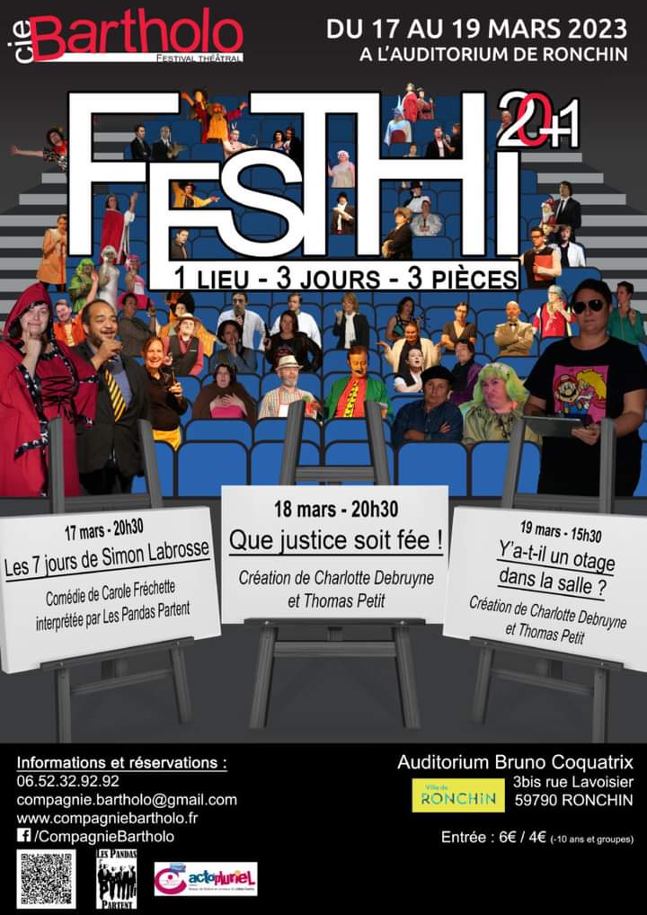 Nous remercions une fois de plus nos amis de la compagnie Bartholo qui nous ont invité à venir jouer lors de leur festi à l’auditorium Coquatrix de Ronchin le vendredi 17 mars 2023.